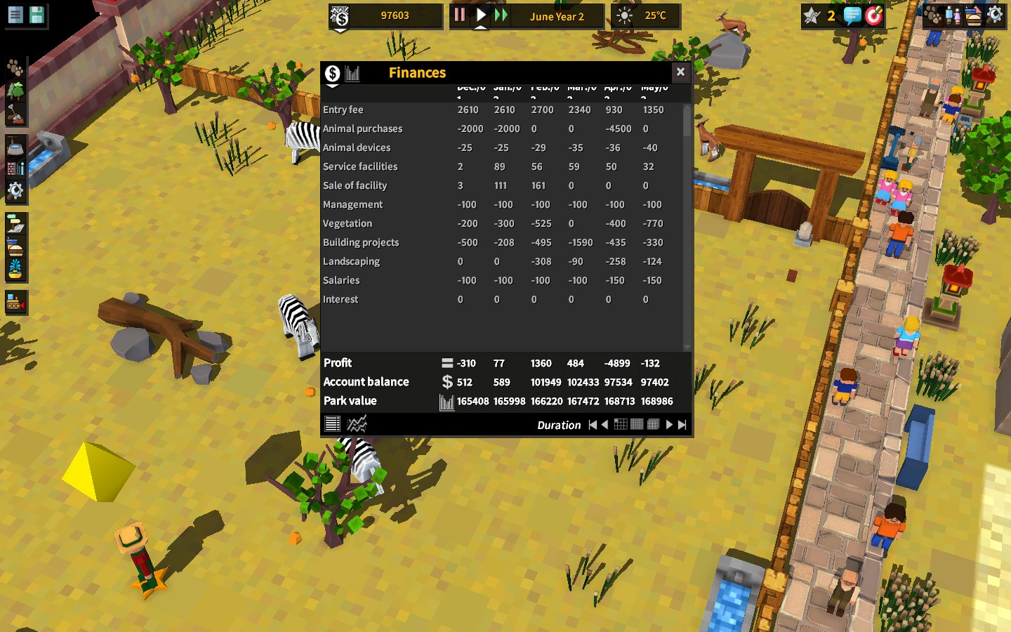 Расходы же составляют, в основном, ваши закупки и жалование персоналу. В общем плане, в экономике Zoo Constructor вы не увидите ничего необычного – стандартная система, которую можно увидеть в любой экономической стратегии.