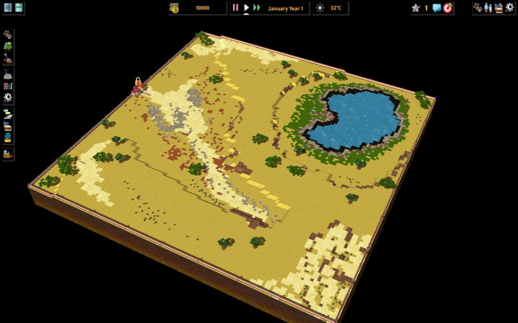 Есть также возможность выкапывать землю, создавать склоны и водоёмы.