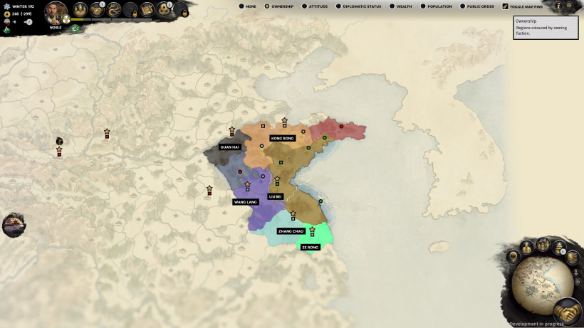Завоевать продовольственную территорию довольно просто, в то время как центральную — тяжелее, из-за чертовых стен. Когда вы завоюете столичный регион, станет доступным возможность назначить губернатора. Также есть возможность отправить персонажа на специальное задание для достижения временных положительных эффектов вроде уменьшения времени строительства или повышения дохода.