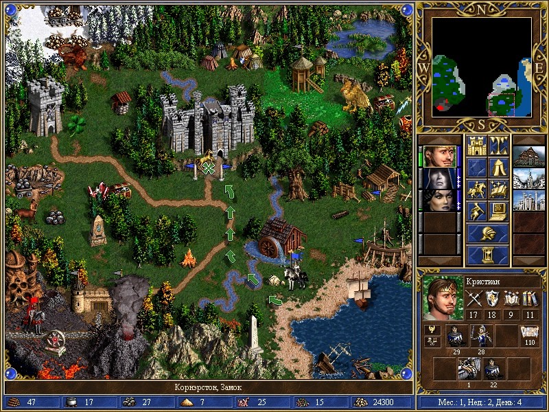 Во-вторых, строительство, как и найм осуществляется мгновенно. Планирование находится в зачаточном состоянии. Поскакал героем по карте, собрал кучки золота/кристаллов/руды и забабахал то, что нужно. Главное, чтобы до конца недели, поскольку прирост юнитов – всегда в понедельник. Исключение – четвертая часть, но и там принцип практически тот же.