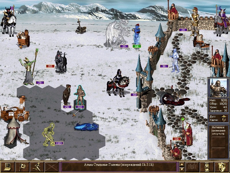 Первый досадный момент – отсутствие во всех (!) играх серии какого-либо аналога очков действий. Или переместись, или – переместись/атакуй, или стрельни. Нельзя отойти и выстрелить или атаковать и потом отойти. Отдельные исключения вроде кентавров в 5 -7 части – именно что исключения.