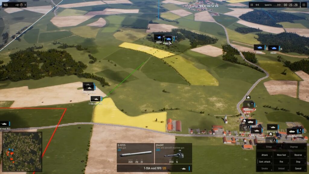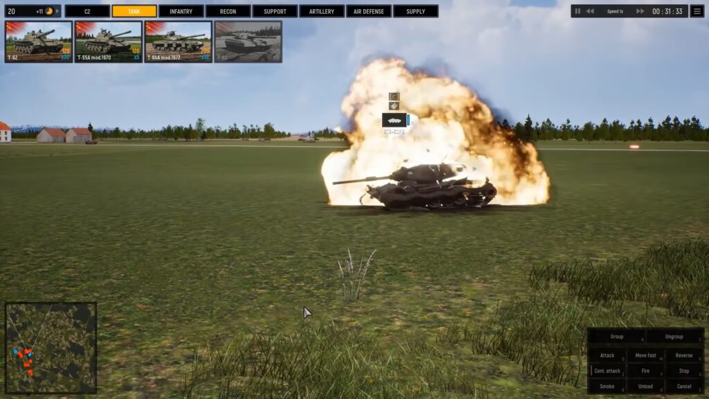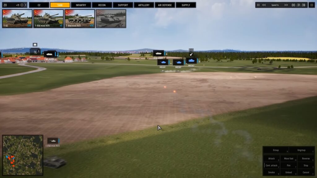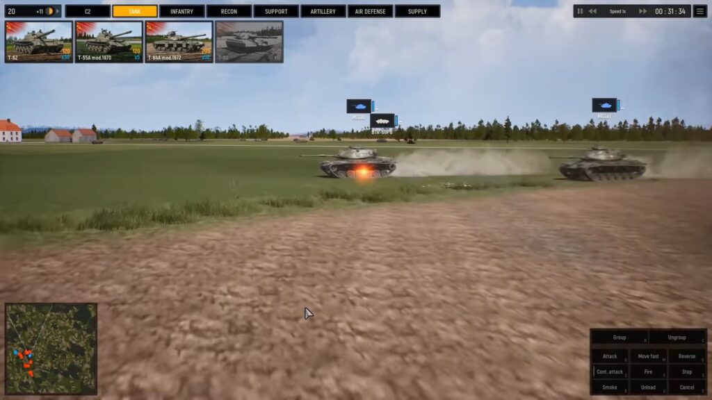 Техника тут двигается медленно, стреляет с частыми промахами. ПТУР’ы, господствующие на поле боя благодаря расстоянию можно уловить задолго до попадания и буквально проследить за траекторией. Всё это ощущается медленно, но благодаря количеству юнитов на карте — масштабно.