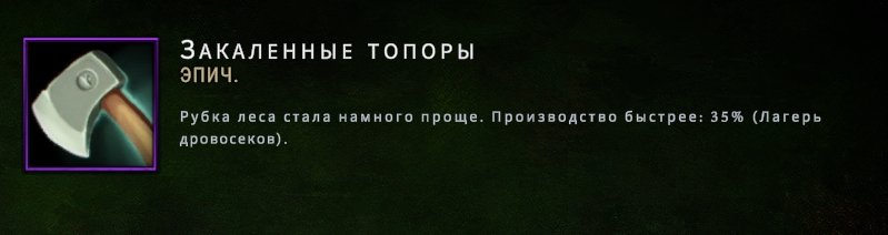Краевые камни. Обращайте внимание на бонусы от краевых камней – среди них есть те, что помогут в производстве топлива. Например, очень мощным бонусом является Закалённые топоры, увеличивающий скорость рубки леса на 35%.