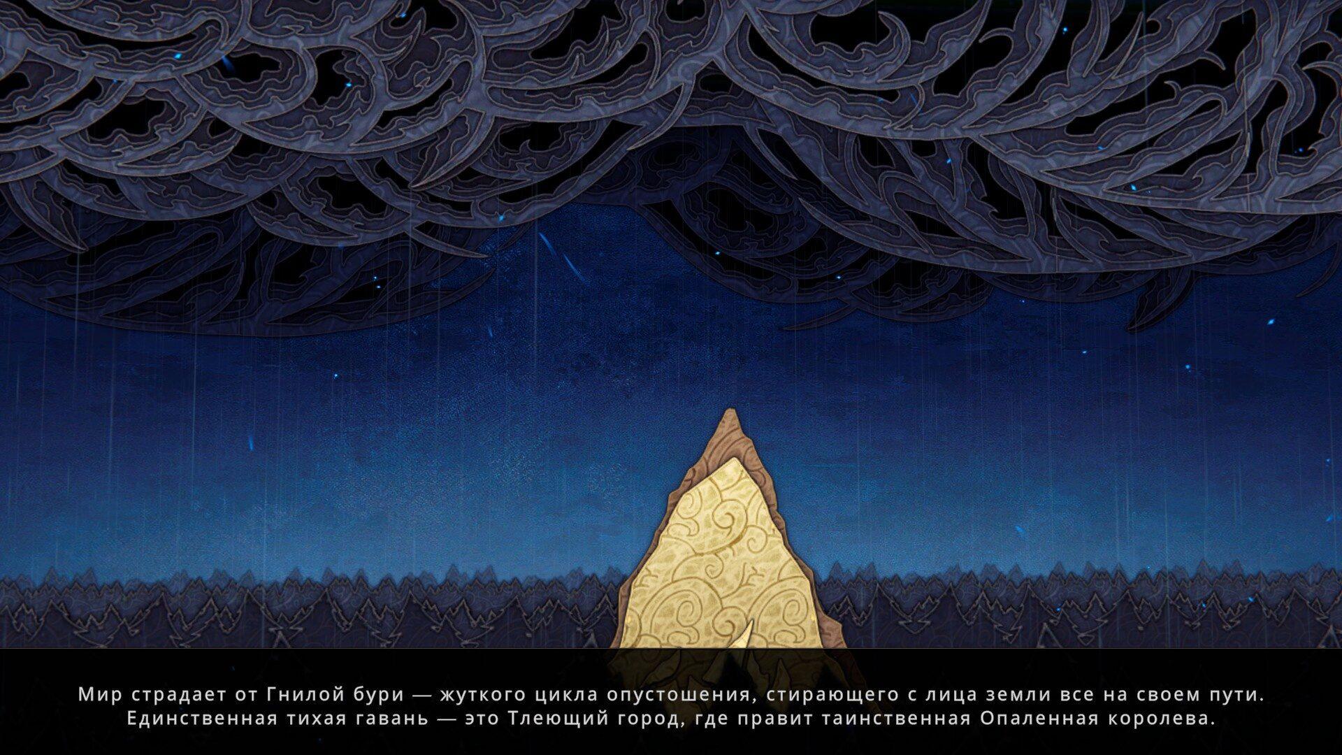 Буря гнили. Буря гнили никогда не меняется и возвращается каждый сезон. Раз за разом бедные существа бегут в Тлеющий город, чтобы спасти свою жизнь от стихии. Все былые противоречия позабыты и люди, ящеры, бобры и гарпии строят своё будущее вместе под предводительством Опалённой королевы. Всё это могло бы стать сценарием приключенческой игры, однако сегодня на обзоре очень интересный представитель на стыке жанров градостроительной стратегии и рогалика — Against the Storm.