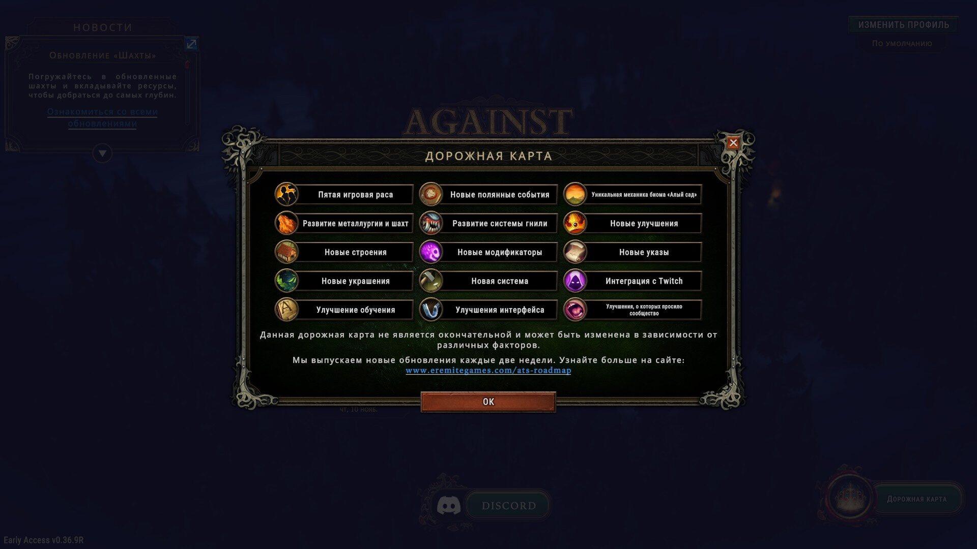 Огромный плюс, что разработчики слушают фидбек игроков и достаточно оперативно выкатывают обновления, учитывающие просьбы. Обновления выходят по плану и в главном меню честно указано, когда будет доступно следующее обновление (обычно дней 15). И на удивление, пока что, обновления могут похвастаться качеством и контентом. Дорожная карта обновлений тоже составлена и ребята из Eremite Games её придерживаются. Отдельное спасибо за русскую локализацию.