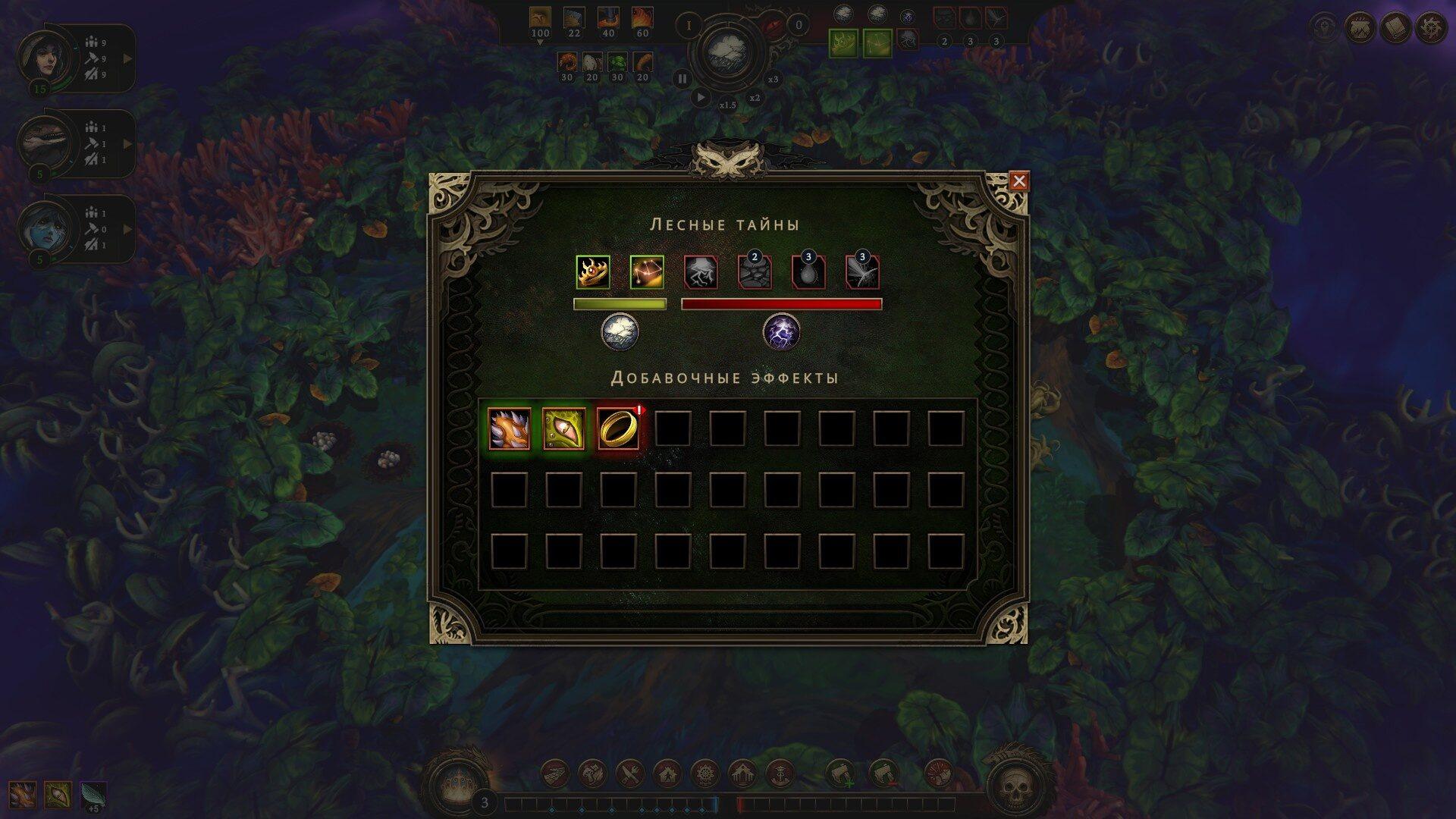 С исследованием окрестностей всё тоже интересно и совершенно случайно. Вся карта поделена на скрытые полянки окруженные деревьями. Чтобы узнать, что там на полянке, нужно прорубить проход к ней с помощью своих лесорубов. Им, кстати, можно назначать, какие деревья рубить в первую очередь, чтобы добраться до полян быстрее. Поляны бывают обычными, опасными и запретными. На обычных полянах встречаются небольшие источники ресурсов и маленькие тайники, но опасностей на них нет. На опасных и запретных полянах всегда встречается какая-то напасть, но зато там встречаются хорошие тайники и даже заброшенные здания. Опасность запускает таймер, при достижении которого случится неприятное для игрока событие — могут сгореть все деньги, может испортиться урожай, может народ начнет умирать. Чтобы предотвратить это событие, игрок может послать рабочих исследовать эту опасность, но для этого обычно требуются ресурсы — для каждой напасти они свои, поэтому подготовиться заранее к событию практически невозможно. Зато в случае преодоления события, вам на выбор могут предложить ресурсы или репутацию с местным аналогом золота. А еще репутация встречается в тайниках. Тайники тоже вскрываются с помощью отправки рабочих и ресурсов, но ресурсы для тайников всегда те же — инструменты.