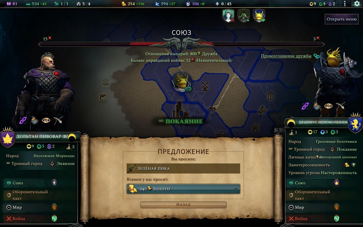 • Помните, что подружиться можно не с одной, а с двумя или тремя фракциями.