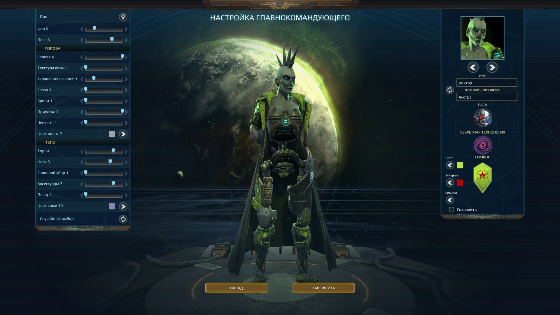 После настроек игры вам предложат выбрать своего главнокомандующего. Ветераны Age of Wonders не увидят тут почти ничего нового. Есть возможность выбора предустановленных главарей, можно создать вождя самому.