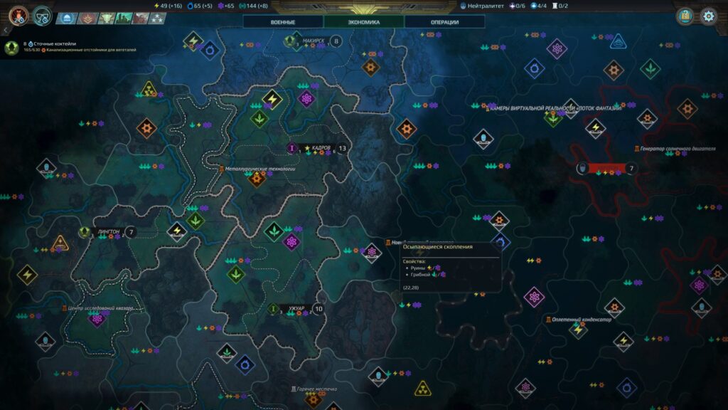 Одной из самых важных частей геймлея в серии Age of Wonders была магия. В научно-фантастическом мире Age of Wonders: Planetfall обошлись без магических трюков, но это не значит, что целая прослойка замечательных механик ушла безвозвратно. На смену заклинаниям пришли операции и доктрины. Операции – это та же магия; они делятся на тактические (применяемые в бою) и стратегические (применяемые на глобальной карте). Отдельно выделены доктрины, которые дают постоянный эффект после того, как их приняли.