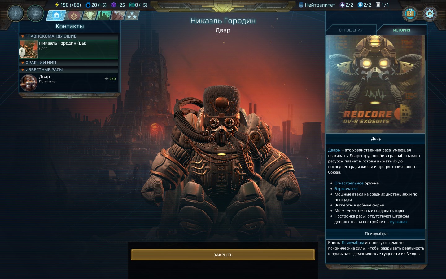 Уникальные особенности можно посмотреть на экране выбора фракции либо в меню дипломатии, выбрав свою расу и нажав «История». Игнорируя уникальные особенности, вы усложняете себе игру, особенно на высоких уровнях сложности.