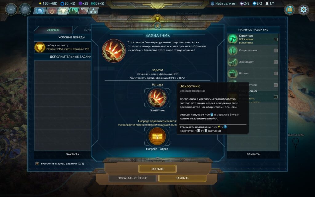 Задачи, находящиеся в меню задач, открывают доступ к довольно мощным доктринам. Целенаправленное выстраивание стратегии по выполнению нужных задач и последующему использованию бонусных доктрин способно дать вам большое преимущество.