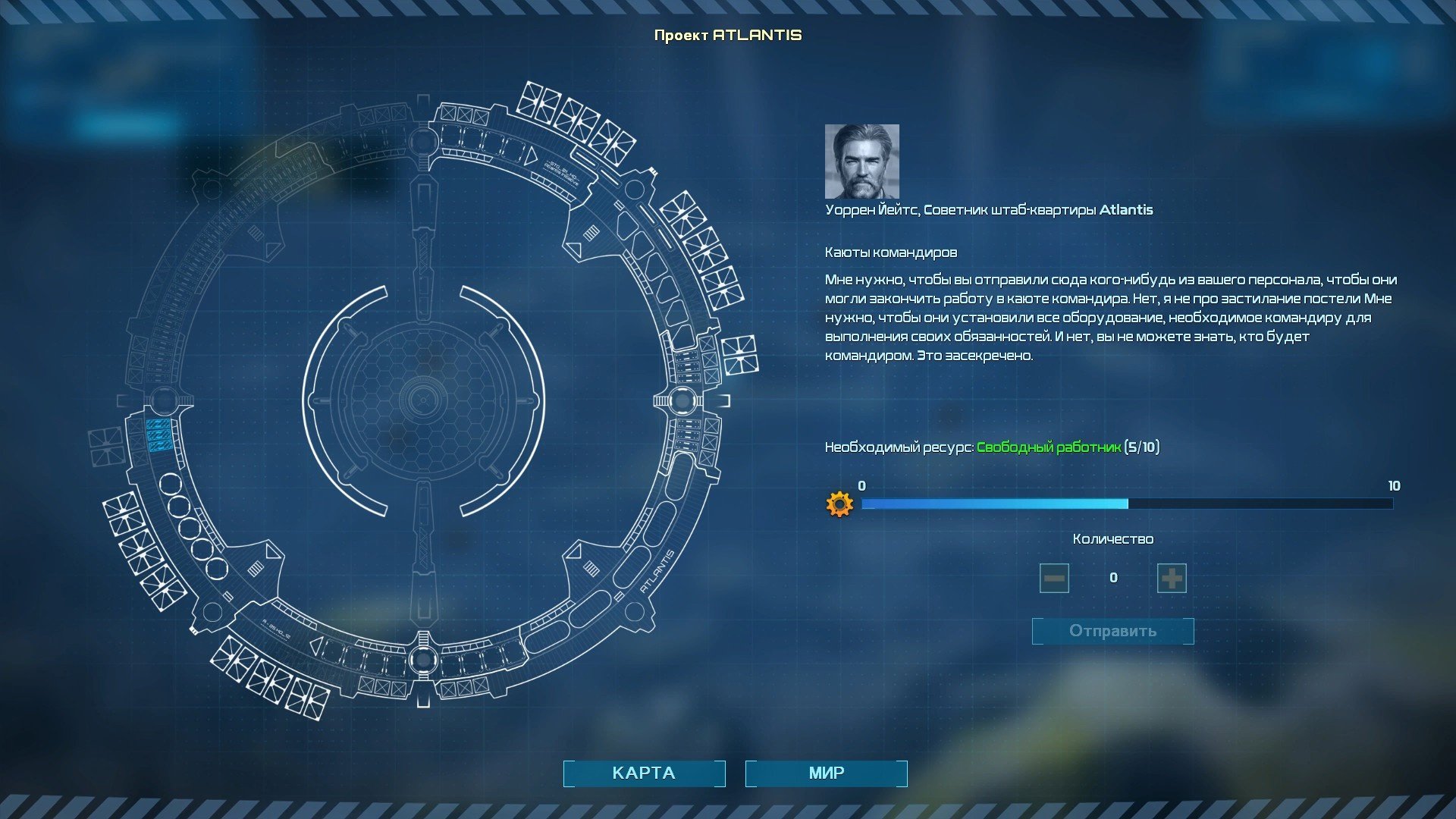 Выражение «сюжетная кампания» не очень соответствует действительности, ведь весь сюжет проходится на одной карте. В начале игры со мной на связь вышел помощник правления Atlantis, далее на протяжении всего сюжета он являлся связным между мной (мэром) и правительством. Сюжет прост: человечество спасается под водой, строит разрозненные города, но правительство имеет планы построить гигабазу, где сможет поместиться невероятное количество людей, что поспособствует спасению всей человеческой расы.