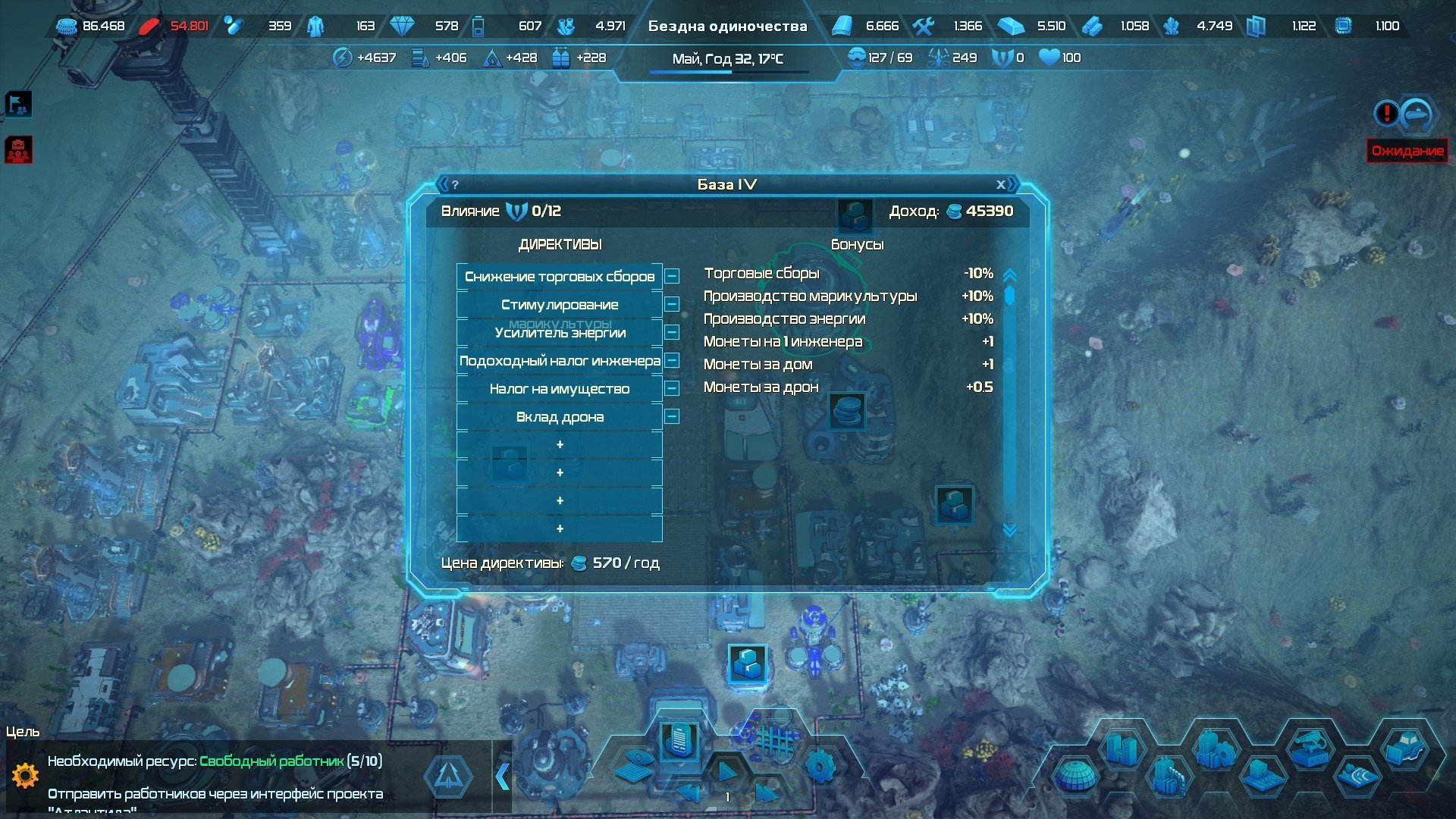 Для торговли нужны либо деньги, либо товары чтобы эти самые деньги получить. С помощью соответствующих директив в мэрии вы можете обкладывать некоторые слои населения (и даже дронов) чуть большим налогом, чем остальных обитателей базы и это поможет решить финансовый вопрос.