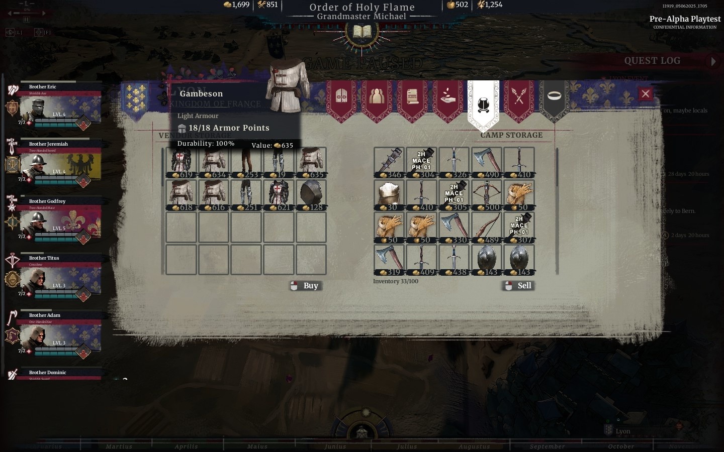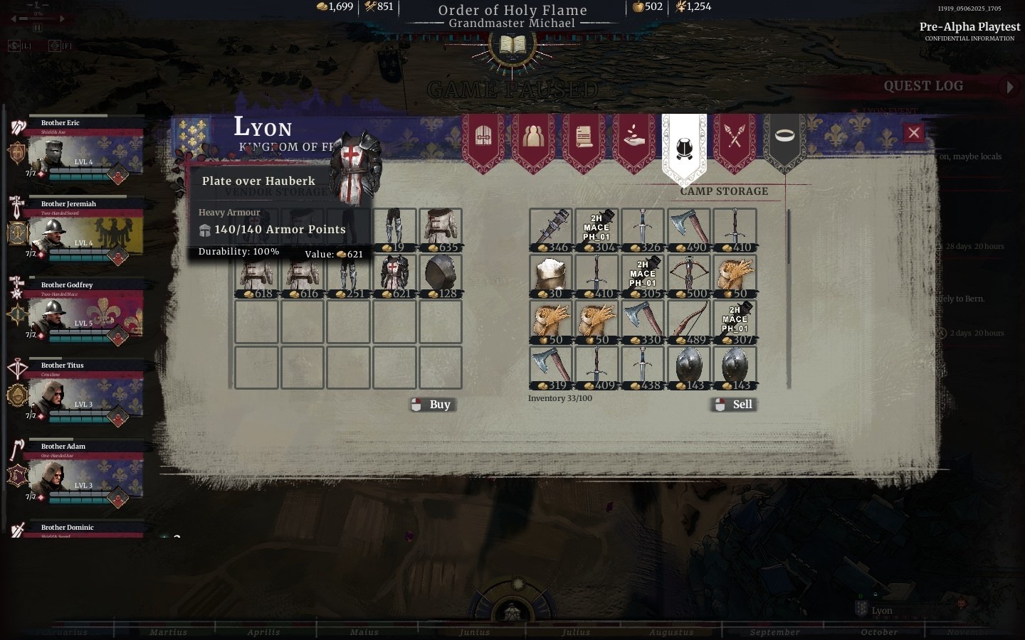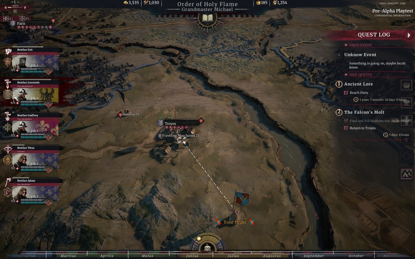 Безусловно, игра ещё далека от своего окончательного облика, но уже сейчас виден целый ряд структурных проблем разной степени значимости. Во-первых, игра заметно проще своих источников вдохновения хотя бы тем, что, пока ваш отряд не требует регулярного денежного содержания. Это можно обосновать сюжетно (всё же игрок возглавляет не банду наёмников, а орден крестоносцев), но, с той же лорной стороны — это обстоятельство не мешает вам набирать людей в орден буквально с улицы и за деньги, а с игромеханической точки зрения — это позволяет легко сводить дебет с кредитом… ввиду отсутствия последнего. Кроме того, это лишает размер отряда одного из важнейших ограничителей общей численности.