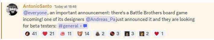 Важный анонс: скоро вас ждёт настольная игра Battle Brothers. Один из наших дизайнеров @Andreas_Pa только что анонсировали её, и они ищут людей на бета-тестирование