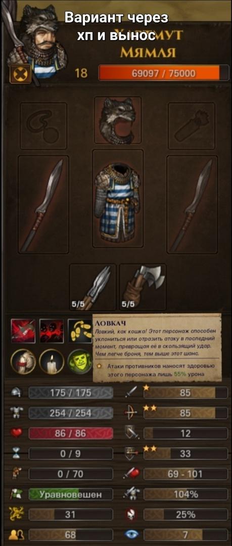 А в случае прокачки через хп и вынос можно одевать доспех и шлем потяжелее, главное держать % от нимбла в пределах до 60%. В случае убийства леших и сетеплетов можно будет сворганить облегчающий подбой и одеть доспех ещё тяжелее.