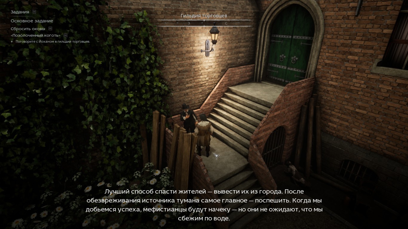 Что конкретно делает алхимический туман? Как он помог отбиться от захватчиков, и помог ли? Короче, вступительный ролик мутный, как скрытые за этим самым туманом текстурки. И дальше не лучше. Скажем, мы знаем, что город заполонили культисты, но чего они добиваются? Почему люди не могут сбежать из города? Про завороты сюжета я потом ещё немного скажу, но что хочется отметить, так это одну довольно грубую ошибку сторителлинга, которая убила лично для меня последние остатки погружения. Вот она: