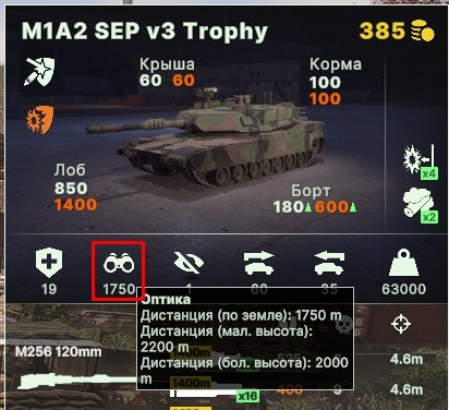 Параметр оптики также указан в карточке каждого юнита и измеряется в метрах.