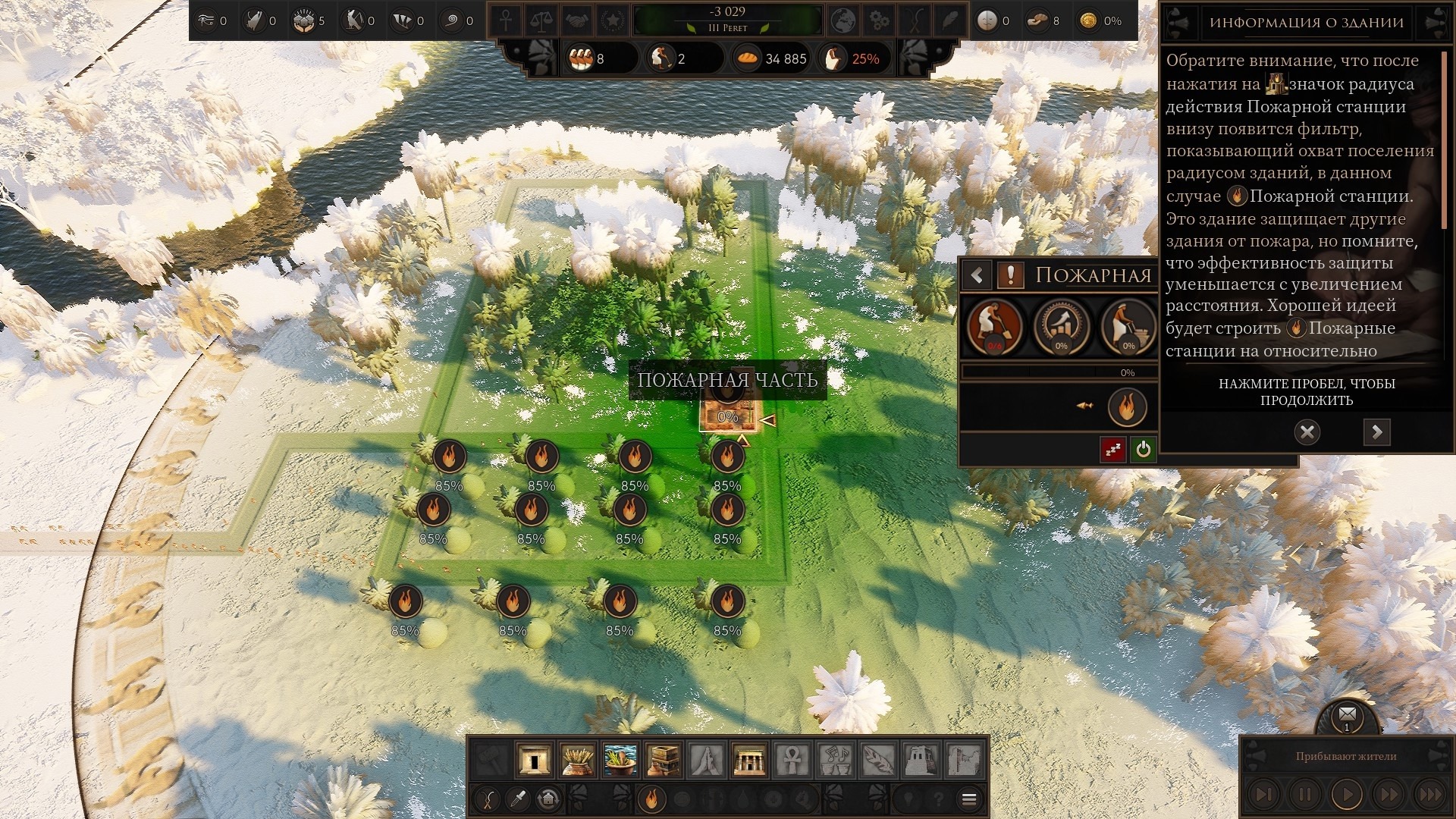 Передвижение камеры по карте очень медленное, с помощью зажатия клавиши SHIFT скорость изменить нельзя. Покопавшись в настройках управления было установлено, что в игре в принципе нет функции ускорения перемещения камеры. С учётом того, что ресурсы разбросаны по всей карте и вам регулярно нужно будет перемещать камеру из одного конца в другой, запаситесь терпением и чайком с ромашкой.