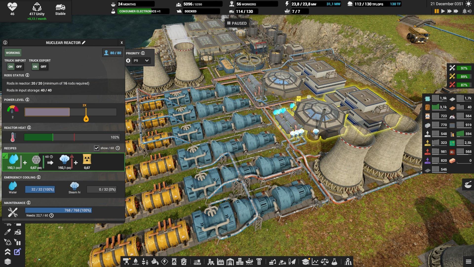 Химическая промышленность в игре представлена во всех гранях и градациях (одних нефтепродуктов аж 5 штук), так что вертеть её можно, как угодно, и перегонять во что угодно. Данному фактору стоит уделить немало внимания, потому что дизель — один из ключевых ресурсов игры. Если закончится он, то можно смело начинать партию заново.