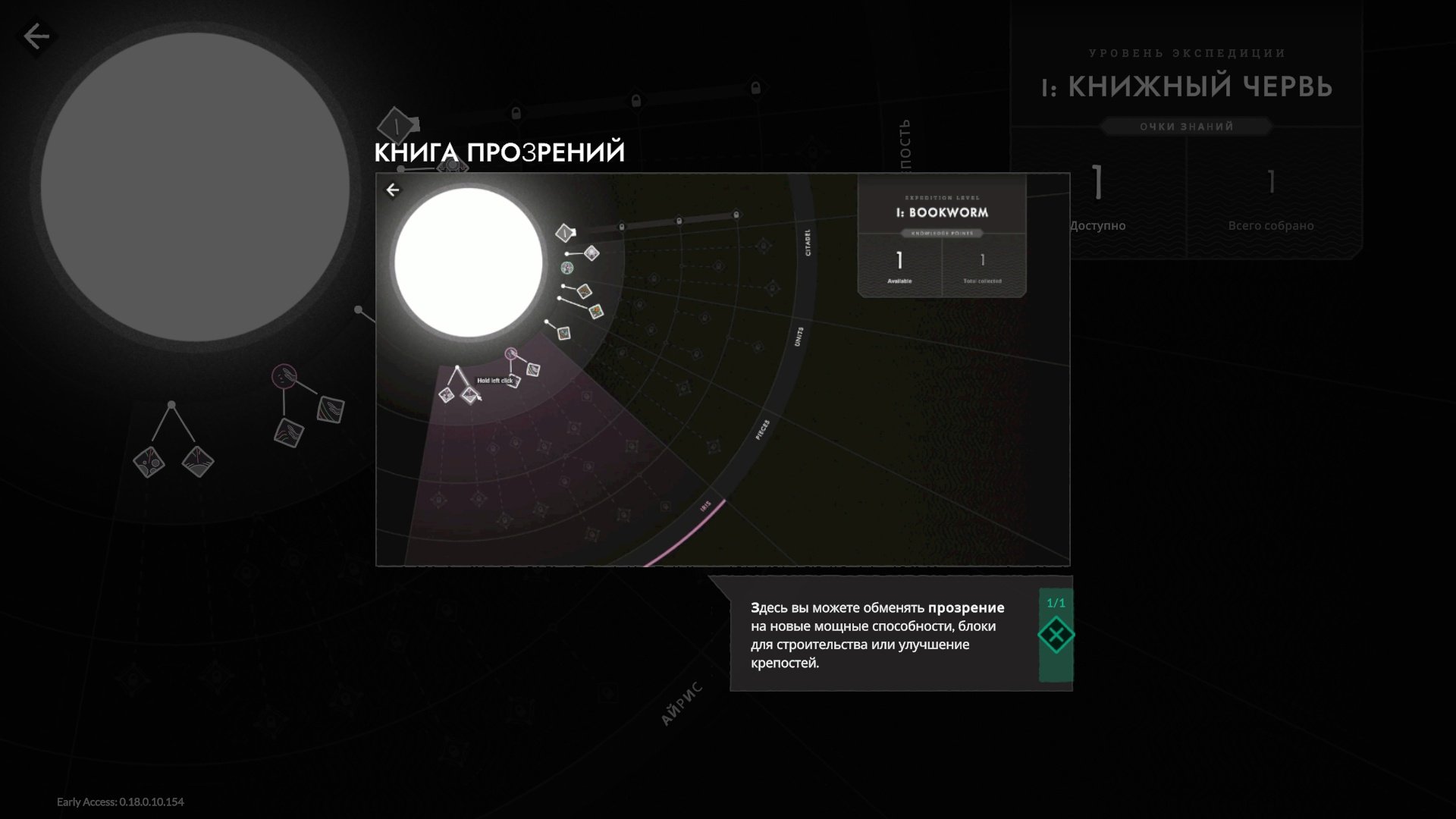Между миссиями в кампании взору игроку доступен рабочий стол героини. Пока там можно сделать всего 3 вещи: выбрать следующую миссию, прозреть или погладить ворона. С миссиями вопросов нет, ворона тоже гладить приятно. Книга прозрения позволяет улучшать героиню, а также открывать новый юнитов, постройки и способности.