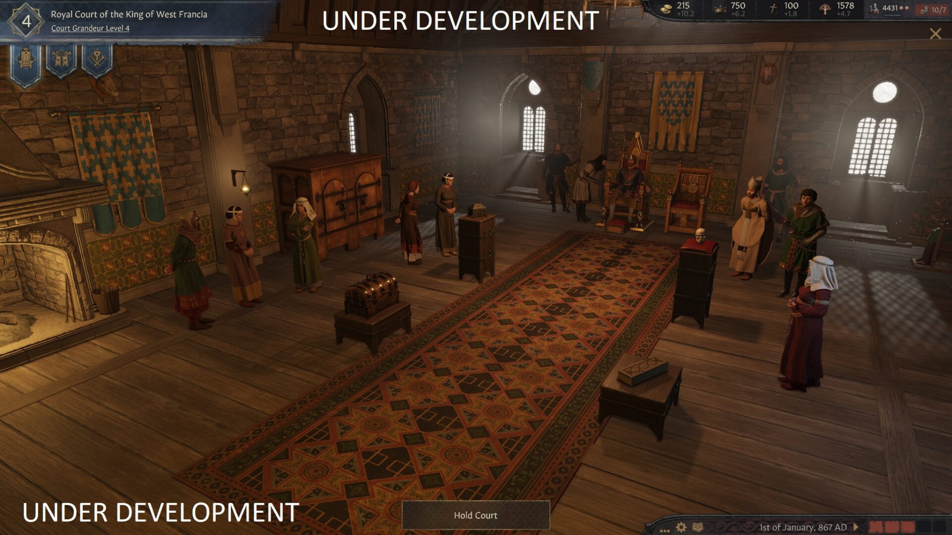 DLC Royal Court будет посвящено внутренним аспектам средневекового королевства. Игроки смогут судить своих вассалов и придворных, приглашать ко двору художников, мыслителей и ремесленников, а также взглянуть на свой тронный зал и пригласить в него видных гостей.