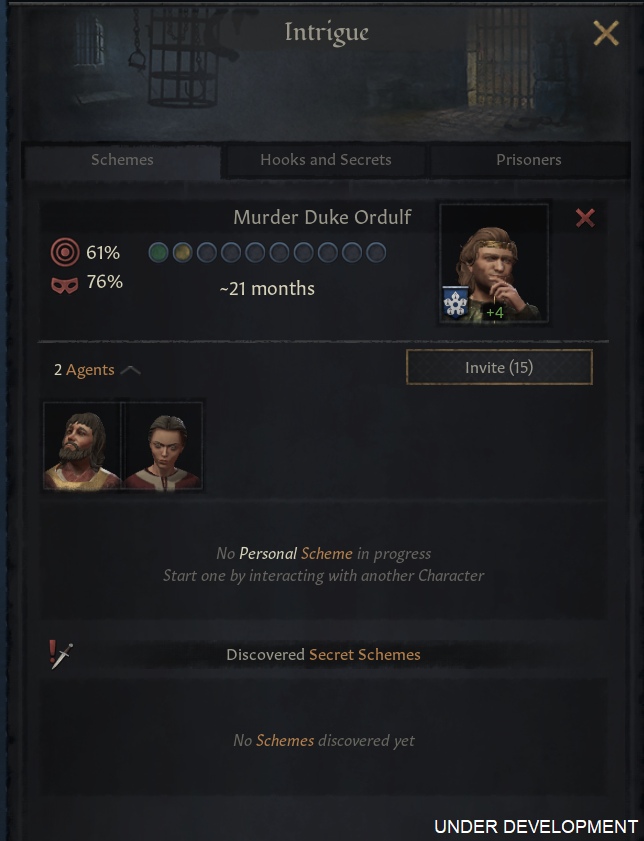 Происки – новая система для воплощения в жизнь различных нехороших вещей вроде убийств, соблазнений и других. В общем плане, система будет работать так: есть интриган и его сообщники, есть цель происков (например, убийство), жертва и полоска прогресса. Когда она дойдёт до определённого уровня, попытки убийства начнут воплощаться в жизнь. Скорость её продвижения зависит от силы происков интригана и силы защиты жертвы.