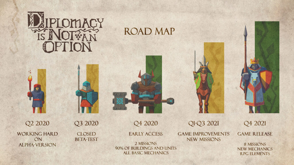 Игроки, которые ищут уловки, «взламывают» геймплей, и, превозмогая трудности, идут к победе. В каком-то смысле, Diplomacy is Not an Option – это симулятор битвы трехсот спартанцев. Чтобы дать игрокам возможность победить тотально превосходящие силы противника, мы продумали разные схемы и тактики и подкрепили их рядом механик. На низких уровнях сложности игра должна прийтись по душе тем, кому нравится строить красивые замки. Для нас важна была эстетическая часть и наглядность происходящего. Но и на низких уровнях сложности у вашего замка, даже на обучающей миссии, есть серьезный шанс оказаться разрушенным.