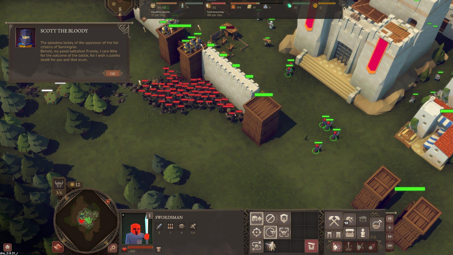 Ребята от сохи проведут на замок несколько рейдов из-за границ карты, а затем предпримут главный штурм, во время которого под стены замка прибудет не только рекордное количество бунтовщиков, но и все оставшиеся на карте жители деревень. По ходу партии окрестности будут постоянно терроризироваться небольшими отрядами восставших, так что охрана — не роскошь, а средство выживания.
