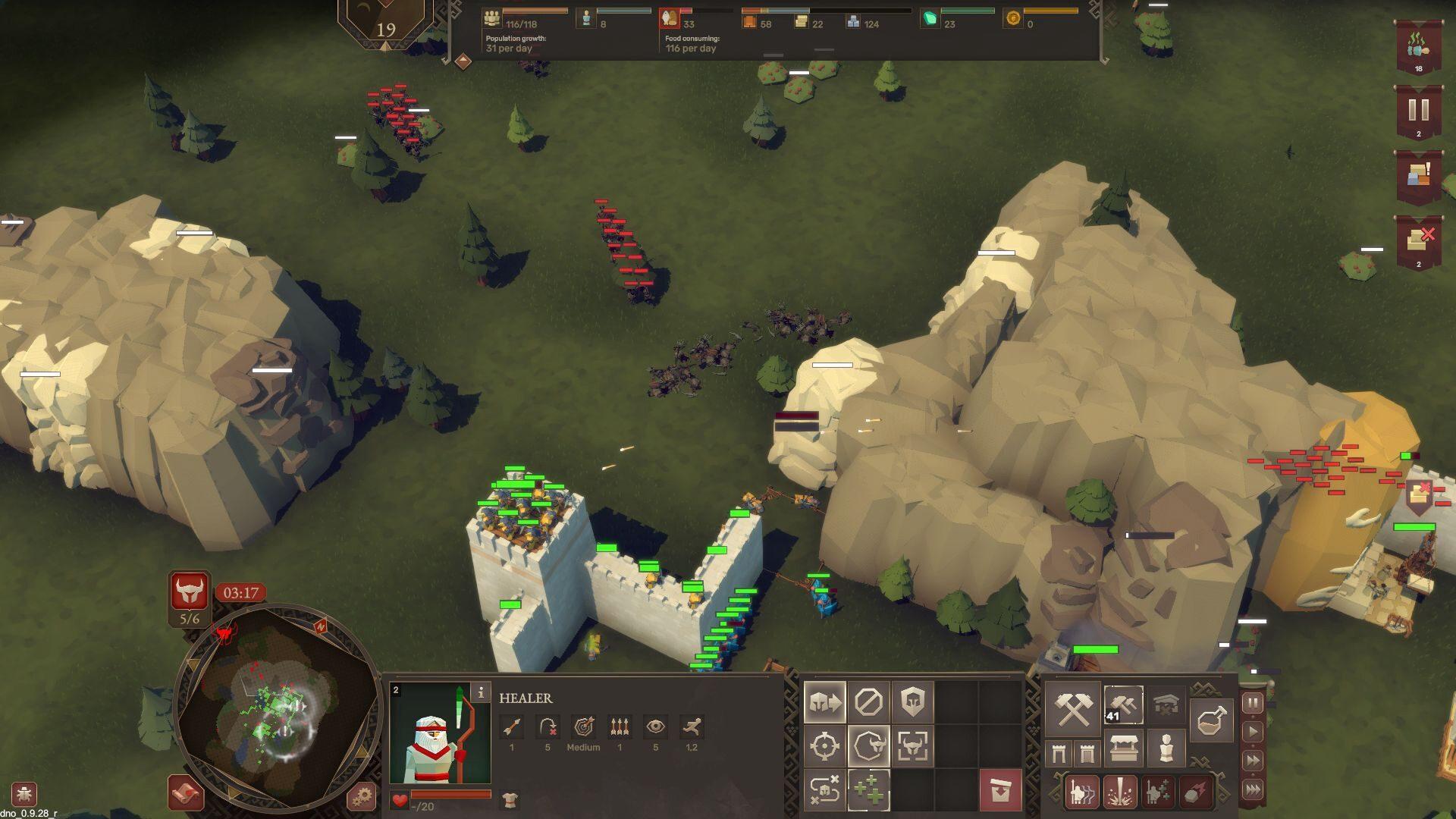 Карта покрыта туманом войны, за которым скрываются залежи полезных ископаемых, тележки с собранными ресурсами и деревеньки восставших, которые будут перманентно плодить новых врагов, так что их устранение должно быть в приоритете. Карты генерируются случайным образом, поэтому немаловажным аспектом разведки будет поиск естественных препятствий, вокруг которых можно будет в дальнейшем отстраивать оборону. Если стартовая позиция игрока открыта со всех сторон, а залежи камня непростительно далеко, то можно сразу начинать заново, потому как сметут стопудово.