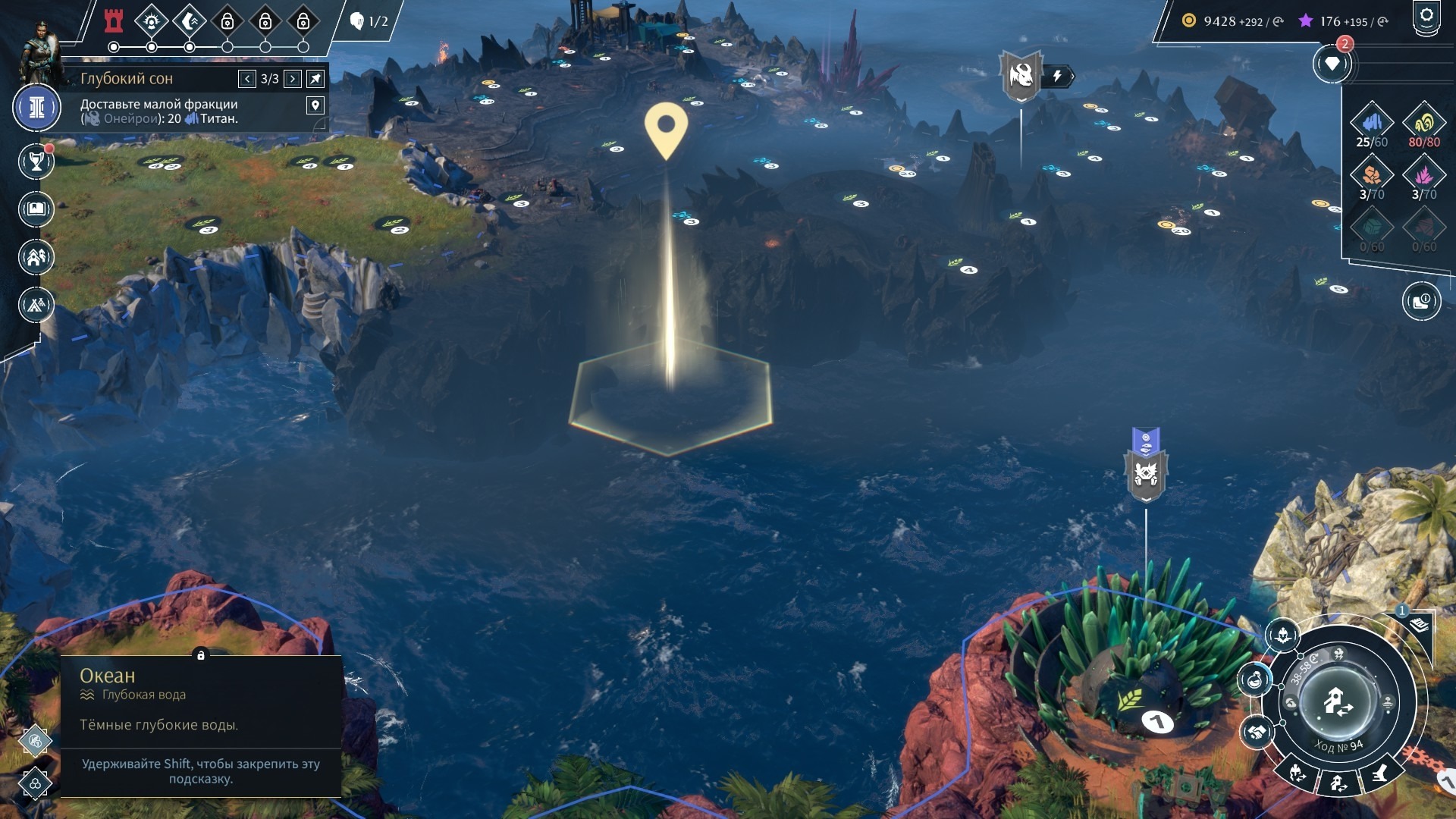 Перенесёмся в Endless Legend 2. В новый океанский мир Сайадха, в котором после катастрофы остатки гордых племён борются за выживание, а позднее и доминирование, не подозревая, что за углом замаячил новый песец. Ещё пока не полный, но уже вполне подкрадывающийся. Собственно, именно с этим новым пробуждением старого зла и связана основная механика игры, а именно муссоны и отливы, в результате которых карта постоянно меняется, открывая участки морского дна с новыми врагами и новыми ресурсами. Учитывая, что стоимость расширения империи растёт в геометрической прогрессии, а скрытые вначале под водой титан и стеклопластик очень нужны, приходится тщательно планировать темпы экспансии, чтобы забрать себе всё самое вкусное, а не то, что просто бесхозно валяется.