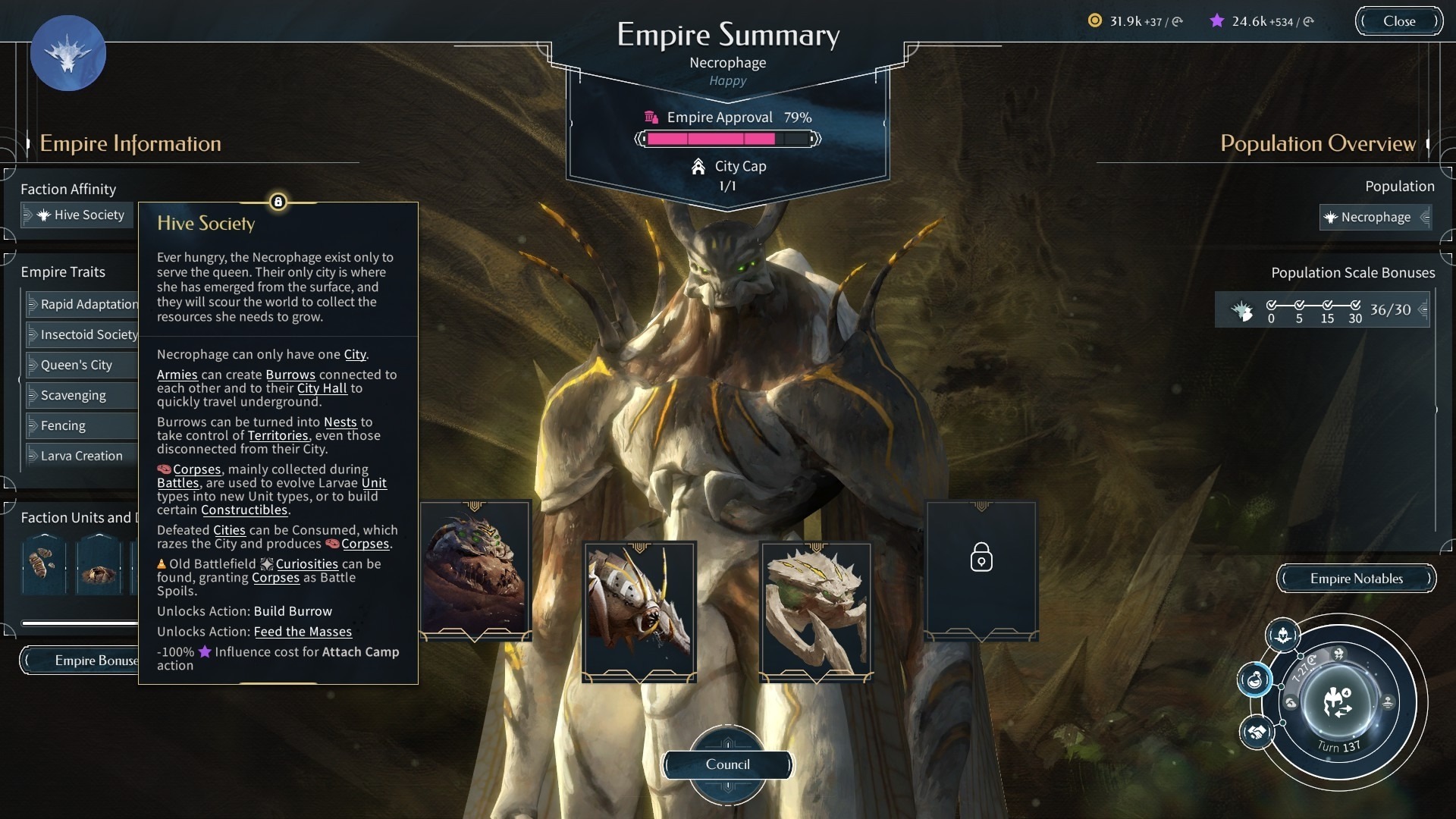 Юниты тоже отличаются. У кого-то рулят отряды дальнего боя, у кого-то колоссы, а кто-то может мгновенно вылечиться за деньгу малую, но есть нюанс: благодаря возможности ассимиляции малых народов (которая почему-то есть даже у жуков sic!) в армию можно добавлять вполне годные отряды нейтралов, которые способны эффективно усилить слабые звенья каждой из фракций. Так что вариативности тактик хоть отбавляй, и поле боя этому только способствует.