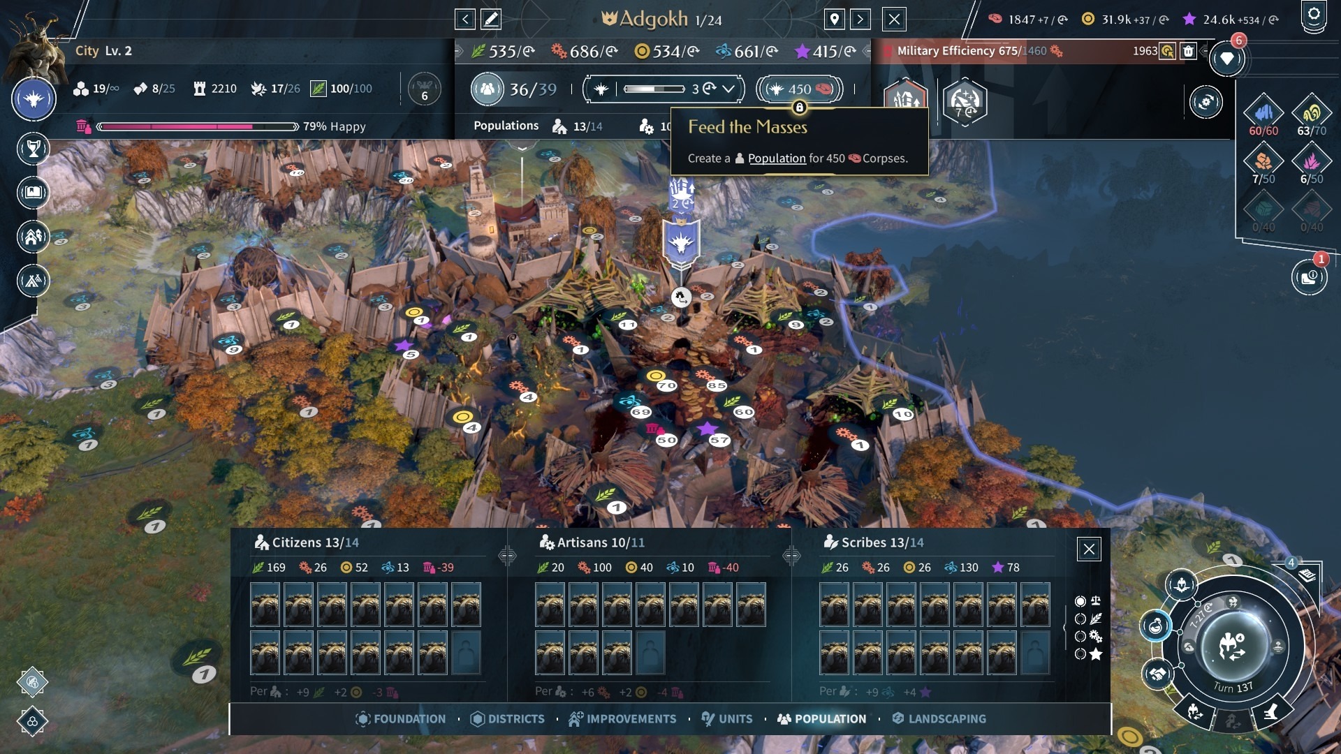В остальном, всё по канонам старой доброй цивилизации. Основание столицы, постройка зданий и увеличение населения ради светлого будущего не только лишь всех. Основные ресурсы всё те же «колоски», «молотки», «пробирки» и «монеты». В нагрузку ещё добавили пункт «влияние», за которое можно покупать новые тайлы и захватывать новые районы, а так же прослыть великим дипломатом. Впрочем, для серии Endless это, конечно, не новинка.
