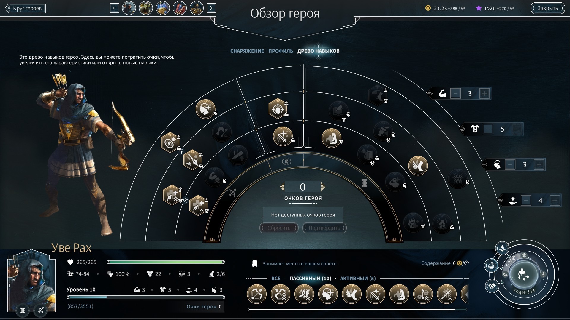 Способности бывают двух видов: активные и пассивные, и если пассивные есть у каждого юнита, то активные есть преимущественно у Героев. Это такие уникальные граждане со своими древами развития и возможностью использовать артефакты. Их действия ровно такие же «походил+ударил», но ударять они могут сильно по-разному. От способности лечить до провести локальный экстерминатус на 7 клетках. Герои являются костяком любой армии и очень сильно поднимают параметры своей свиты. Их основной недостаток только в том, что уникальных героев мало, а наёмники довольно дороги. Тем не менее, набрать их в достаточном количестве не составляет особого труда (а потом свести в одну армию) и мало что сможет устоять перед таким сбродом, особенно если они будут вооружены сильными трофейными артефактами, которые или добываются в бою, или находятся в разных закромах.