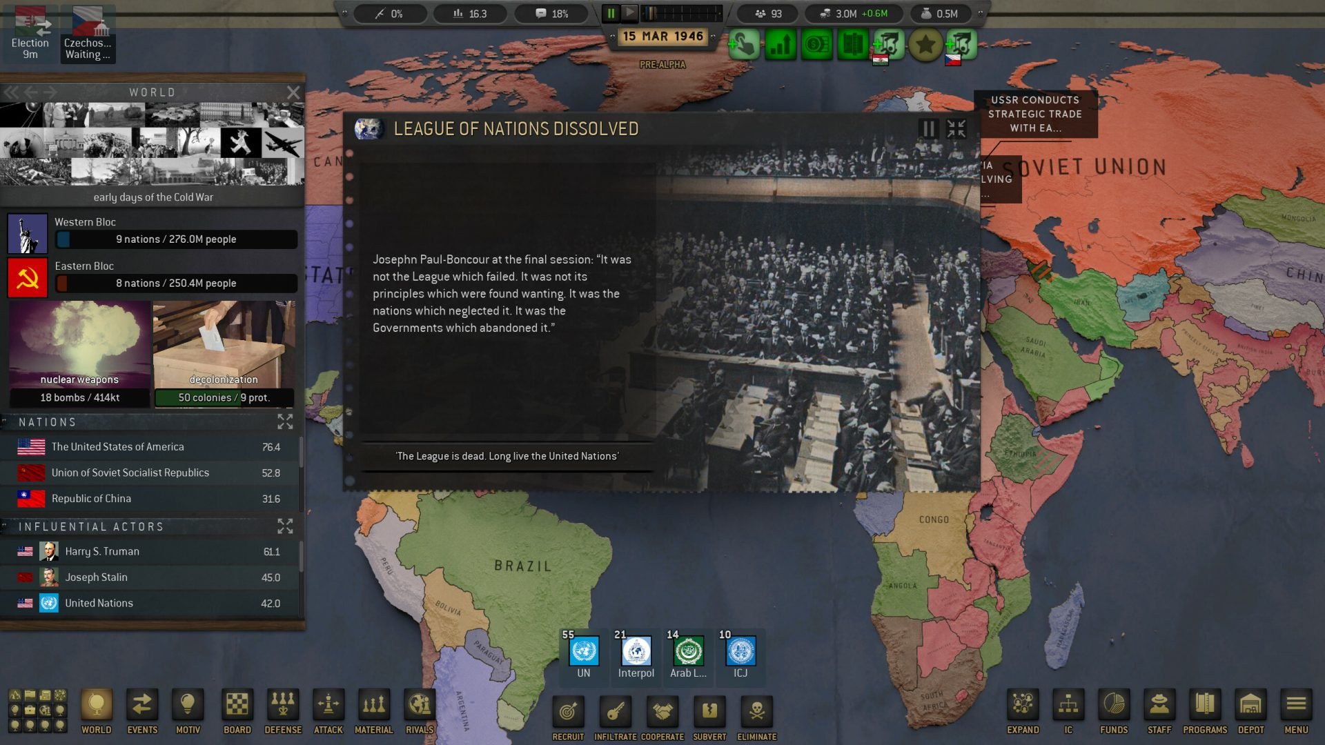 Рассмотрев ход разработки некоторых модов, создатели которых пытаются создать игру о Холодной войне и современности, я могу смело предположить, что одной из таких областей может стать реализация детализированной международной организации, в особенности ООН. Тут и начинается кладбище благих намерений. Бесконечные структуры, действия, подробности, цепочки влияний и различные случаи, про которые было бы интересно почитать. Можно было бы создать целые игры про большие кабинеты Нью-Йорка или Брюсселя. А игроки! Всегда была и будет небольшая прослойка игроков, которые очень сильно увлечены (и громко об этом говорят) такими организациями. Даже в случае с этим дневником, народ сразу начал строить теории о том, «какую же механику покажут на этот раз».