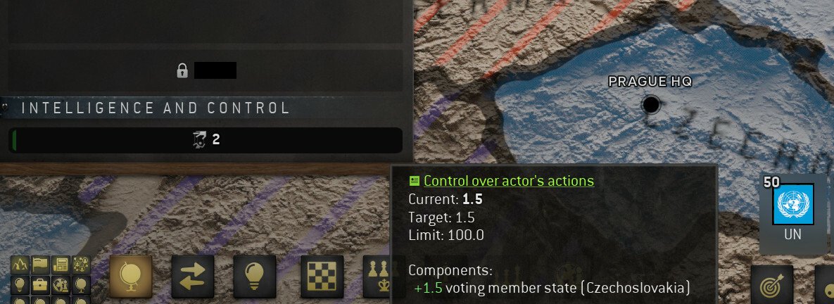Они обычно не равны между собой. Разные уровни контроля определяют примерный уровень дипломатических умений, участие в Комитете безопасности или роль, подобную роли США в НАТО и СССР в Варшавском лагере (или страны-наблюдательницы с нулевой степенью контроля). Как и с другими акторами, контроль открывает двери к возможности предлагать варианты действий и прямых приказов на выполнение действий. Действие по предложению, в зависимости от его деталей, может затем пройти через механику дебатов и голосования, заимствованную из системы правительств Espiocracy.
