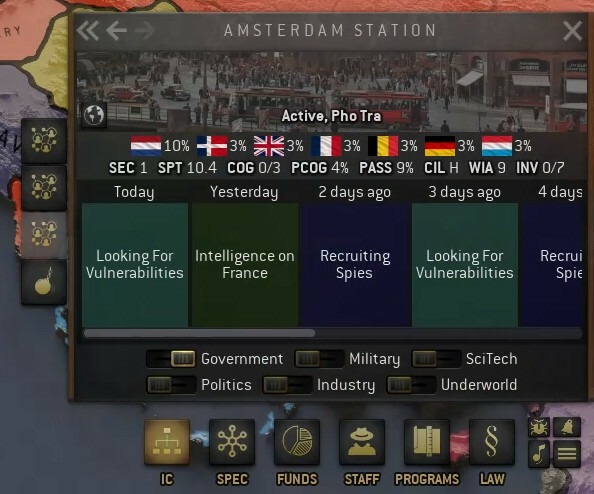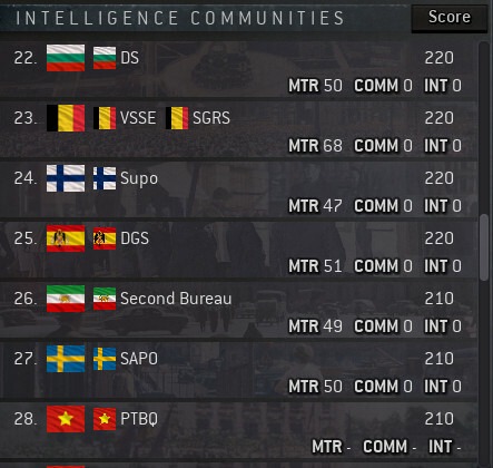 Есть множество других более малых ресурсов и параметров, влияющих на разведывательные операции (например, относительная сила валюты), с которыми вам только предстоит ознакомиться.