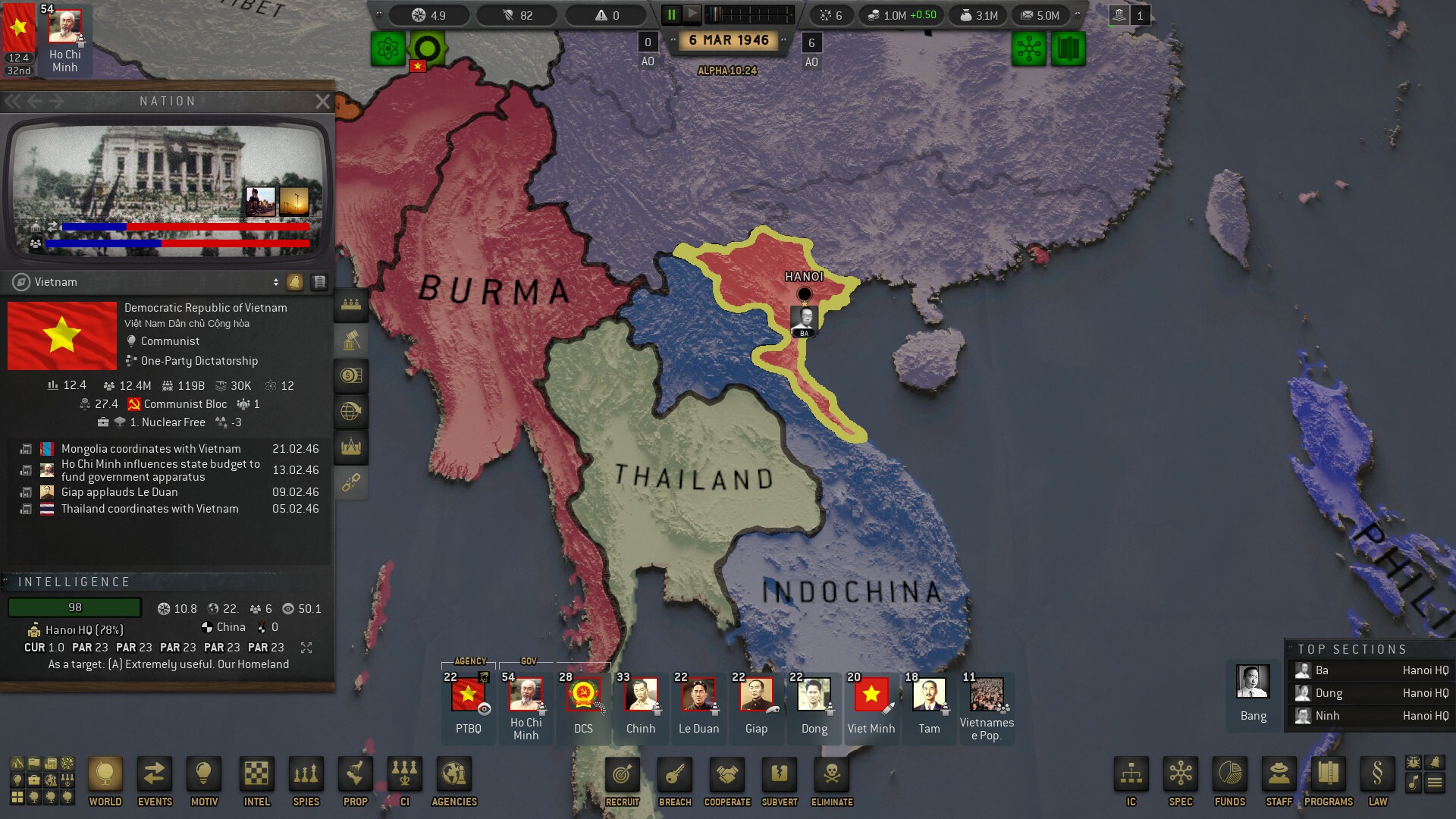Мы играем за военную разведку вьетнамской народной армии. Годы французских репрессий, последующая жестокая японская оккупация и кратковременное сотрудничество с американским УСС превратили нашу службу в довольно многочисленную и обученную силу, находящуюся на 28 месте по мировым рейтингам.
