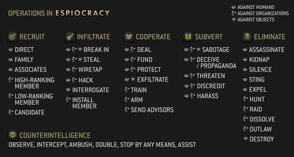 Все типы шпионских операций в Espiocracy