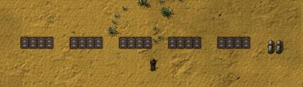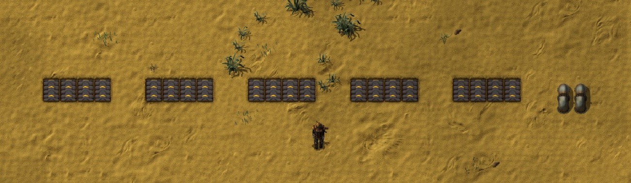 Не обязательно сразу строить все линии. Вы можете просто поставить один квадрат конвейера для каждой линии или начертить шаблон. Можно бросить кусок материала и пометить им каждую линию (для этого возьмите его в руки и нажмите z). Всё это поможет держать в голове будущую конструкцию шины и относительно неё строить другие объекты.