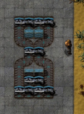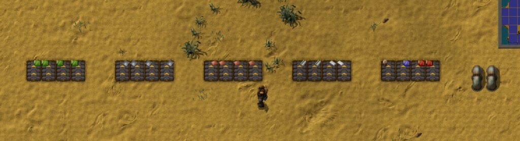 Место между линиями сборки открывает возможность дальнейшей экспансии. Сундуки между сборщиками позволяют эффективно использовать пространство.