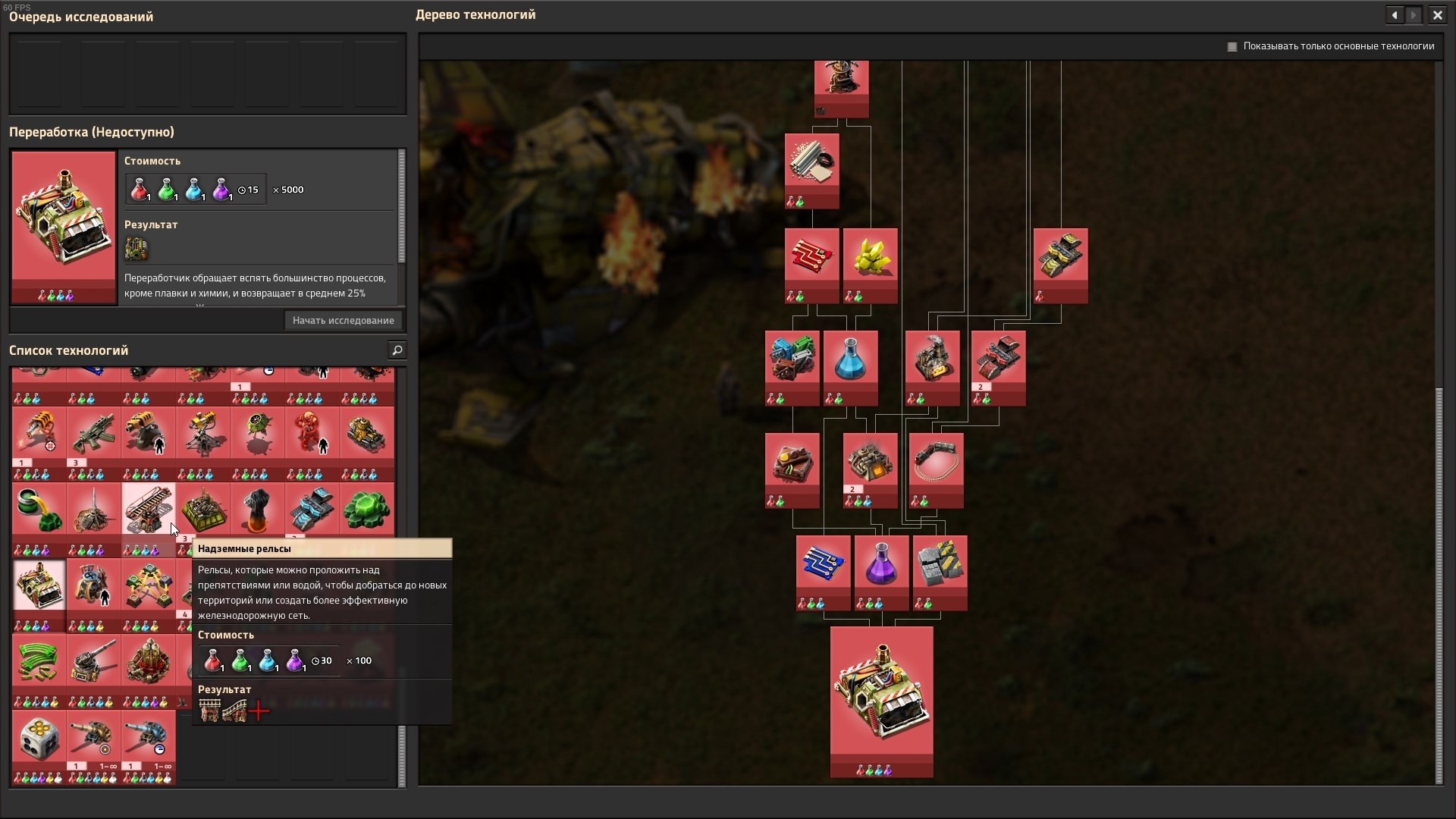 С электричеством тут история интересная. Для независимости от ядерных реакторов вам дают нагревательную башню, она работает от любого горючего материала. Лучше всего её запитывать тухляшкой и ракетным топливом. Что за тухляшка? Всё, что сделано для этой планеты, имеет параметр порчи, со временем всё, кроме зданий и углеволокна, превращается в гниль. Исследовательские пакеты в том числе, причём от их степени порчи зависит, насколько пакет эффективен в исследовании. Солнечные панели здесь работают хуже, но всё ещё лучше, чем на Фульгоре. Всего 50% мощности по сравнению с Наувисом. Биокамера, хоть и имеет 150% продуктивности, из обычных рецептов умеет делать только ракетное топливо и преобразовывать нефтепродукты (мазут в дизель, дизель в попутку), поэтому нет смысла тащить это здание на другие планеты.