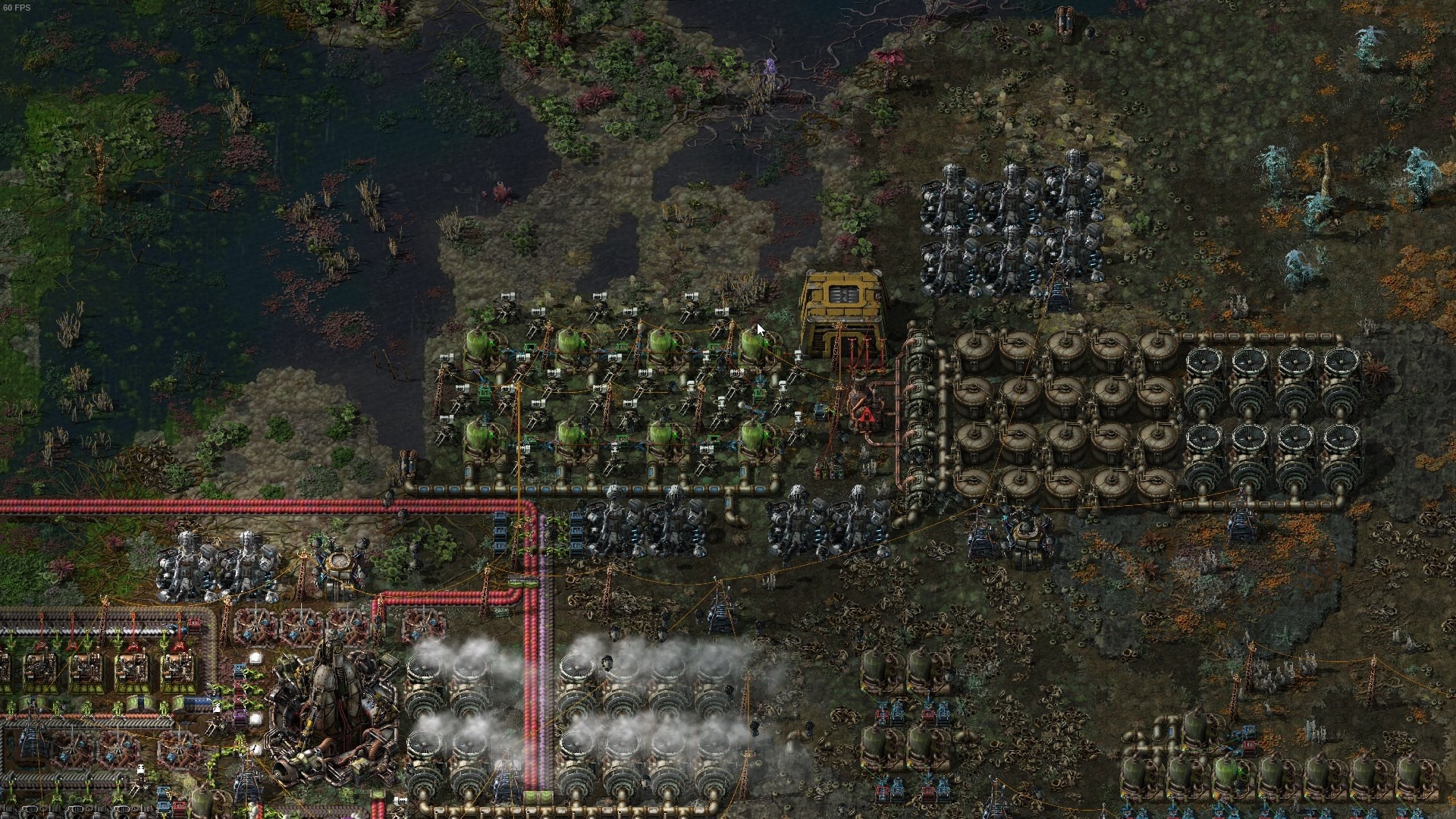 Ещё в литейных можно делать конвейеры и трубы, а так как они опять имеют 150% продуктивность, есть смысл эти производственные мощности затащить на нужные планеты. Среди главных исследований, основанных на новых исследовательских пакетах – артиллерия и взрывчатка для скал. Также есть исследование переработки астероидов в другие типы, модули скорости 3 уровня и новые конвейеры, которые можно делать только на вулкане. Для Фульгоры можно исследовать возможность ставить надземные рельсы на глубокие участки мазута. Среди опасностей на планете только Разрушители — это огромные черви, которые атакуют все строения, стоящие на их территории. На игрока они реагируют только когда тот наносит им урон, а урон нанести им сложно. У червей иммунитет ко многим видам урона, поэтому лучше всего убивать их более продвинутыми турелями. Малых и средних разрушителей можно убить на танке урановыми снарядами (не взрывными) или кучей турелей. Энергия тут вполне легко добывается солнечными панелями или через создание пара из серной кислоты.