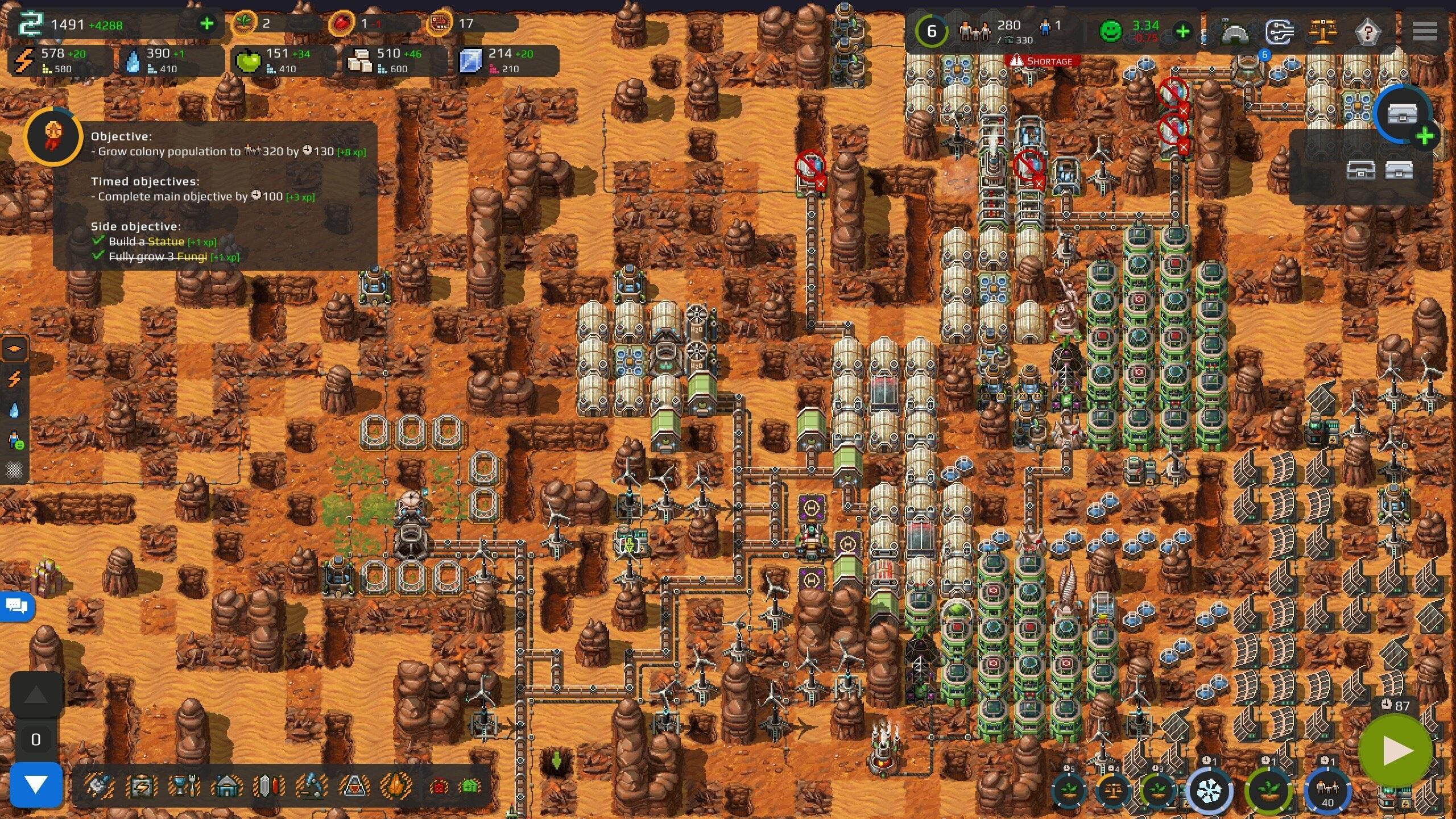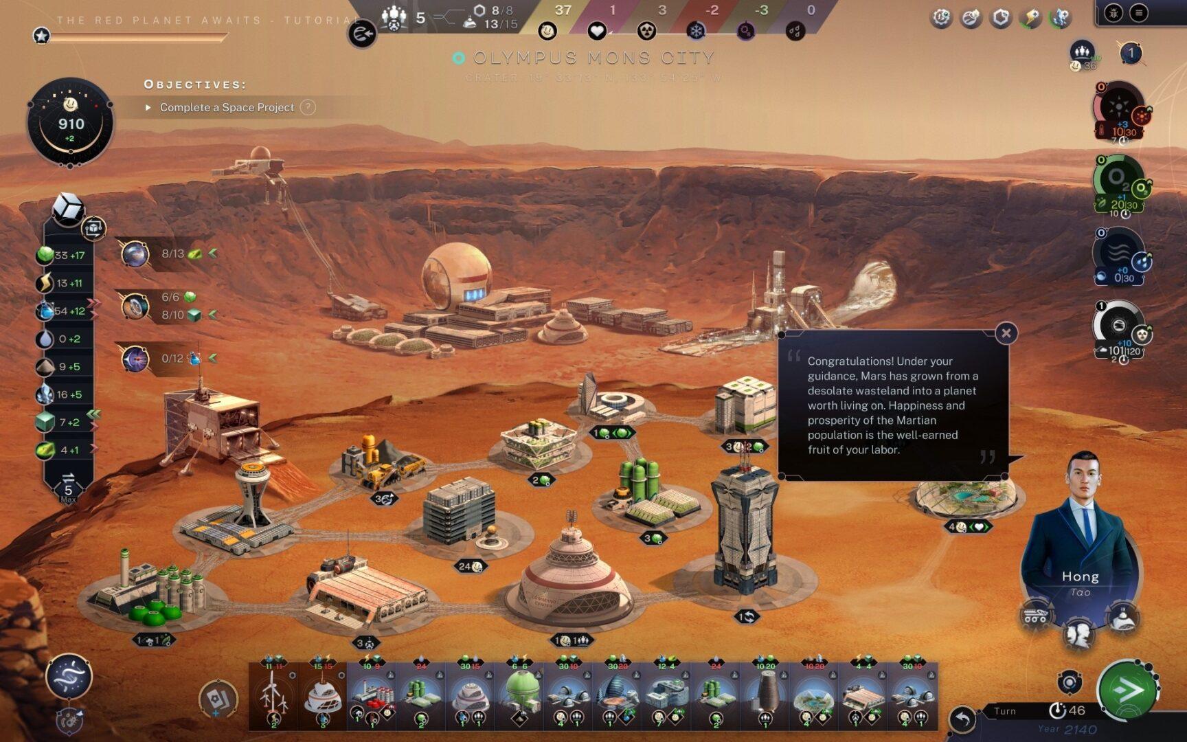 Безусловно, данная стратегия является одной из самых первых современных игр, которая детально и реалистично показала процесс колонизации Марса. Допуская некоторые геймплейные упрощения, такие как ускоренное течение времени, игра достаточно неплохо симулирует то, как выглядели бы первые шаги по колонизации планеты. Сначала вам необходимо отправить на Марс дронов, которые построят базовую архитектуру, затем возвести купола с пригодной для жизни людей атмосферой, а лишь затем доставить на нескольких ракетах первых колонистов. После этого начнётся ещё один длительный период, в котором вы будете полностью зависеть от поставок ресурсов с Земли. И лишь под конец игры вы сможете создать полностью независимую колонию на Марсе, построив обширные добывающие комплексы и футуристические города.