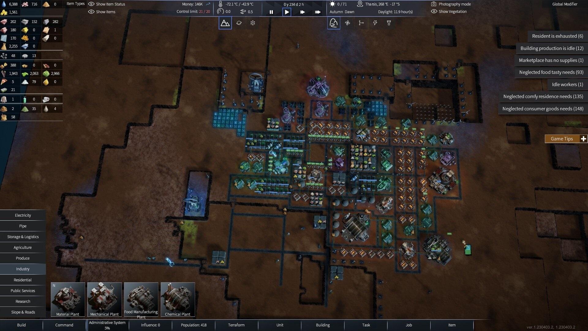 Тем не менее строительство в Reshaping Mars ограничено гексагональными клетками – свободно размещать здания не получится. В целом, графика Reshaping Mars выглядит достаточно упрощённо и схематично, а игра концентрируется на менеджменте множества различных деталей, а также предлагает очень большое древо технологий.