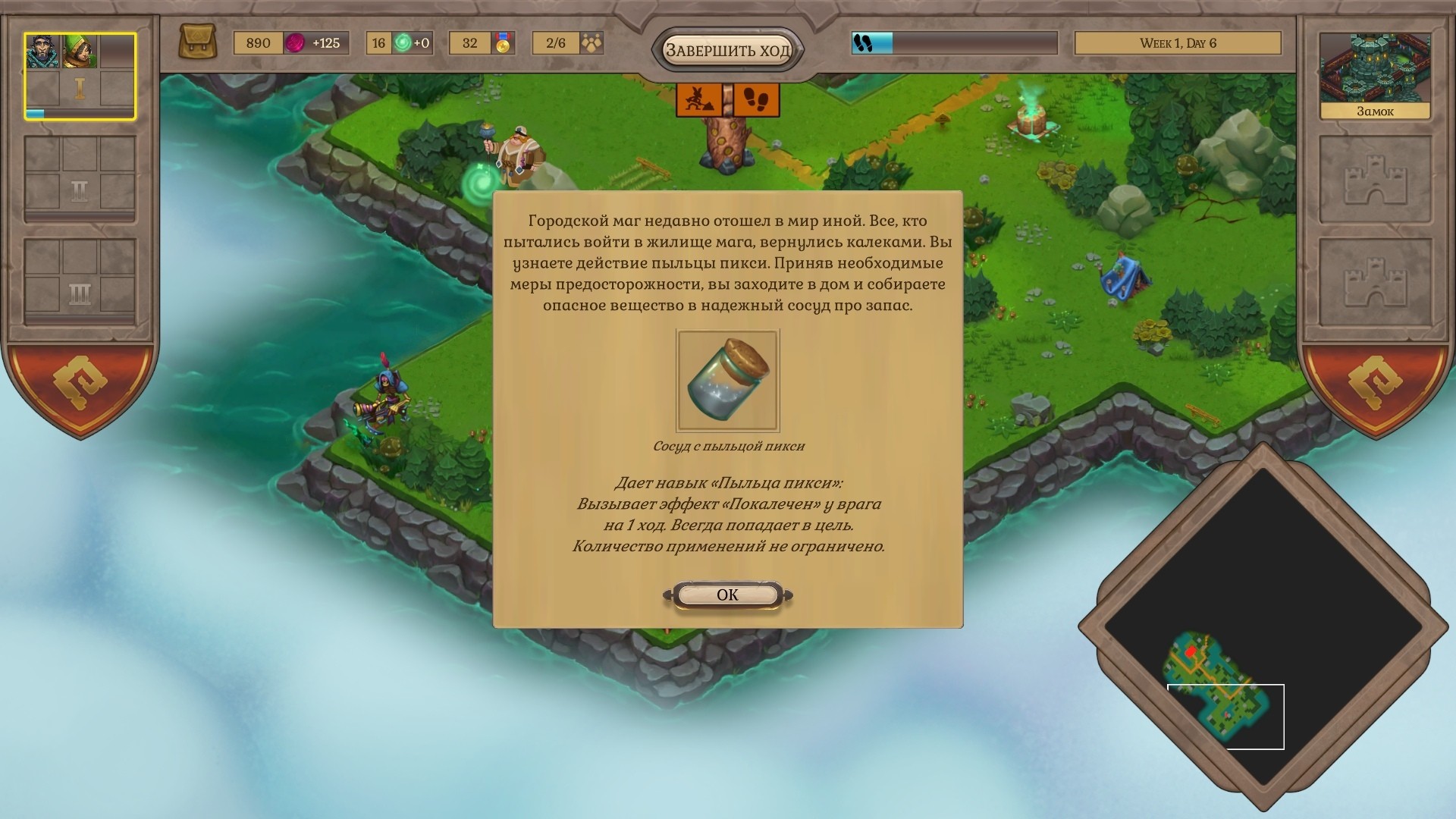 Приятно, что данные действия регулярно совершают ещё и противники. Но только именные. Обычные противники, что стоят на страже артефактов и ресурсов, выполняют роль болванчиков для битья и умеют только обходить укрытия. Таких битв много особенно в начале партии и пропустить их никак нельзя, хотя уровень сложности в основном минимален. Это нельзя назвать минусом, но сильно раздражает, когда десятый бой с крестьянами приходится играть самому без возможности пропустить или сразиться автоматически. А уйти нельзя — там же сундук с опытом!