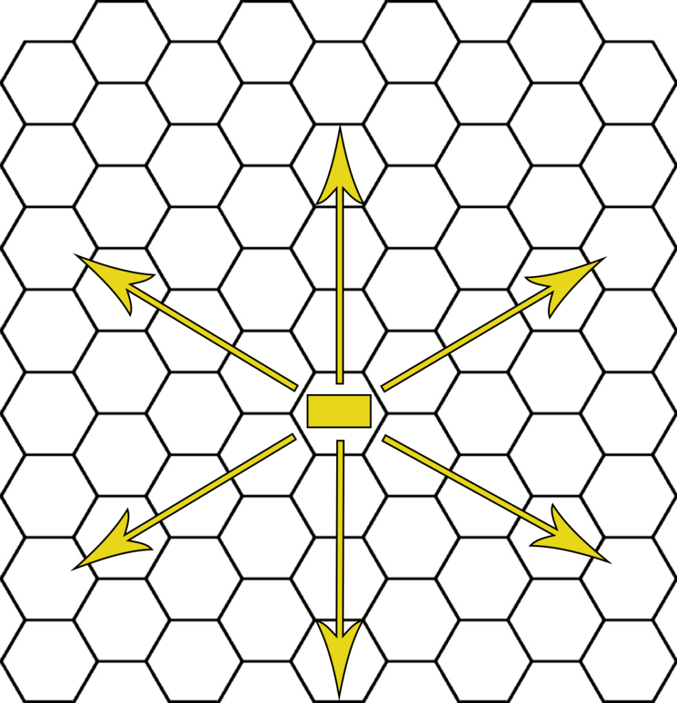 Направления (стороны) действия – это направления, на которые юнит, находящийся на игровой клетке, может ходить, атаковать, и с которых он может быть подвержен нападению. Представьте типичного мечника в любой пошаговой стратегии, а затем то, в каком направлении он может пойти и кого он может ударить мечом. При использовании гексов и квадратов количество возможных направлений будет различаться.