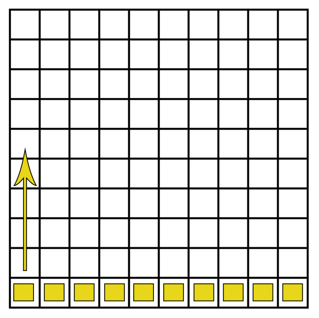 При использовании квадратной сетки с возможностью действий по диагонали вы можете ходить прямо в любую сторону и в любом месте выстроить прямую формацию войска.