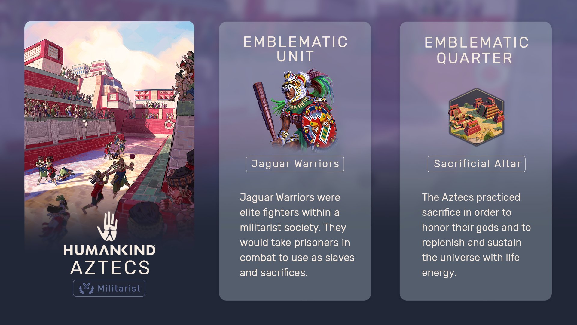 Последней анонсированной культурой средневековья в Humankind становятся Ацтеки. Ждём анонса культур Нового времени, а пока что знакомьтесь с тем, как будут представлены Ацтеки.
