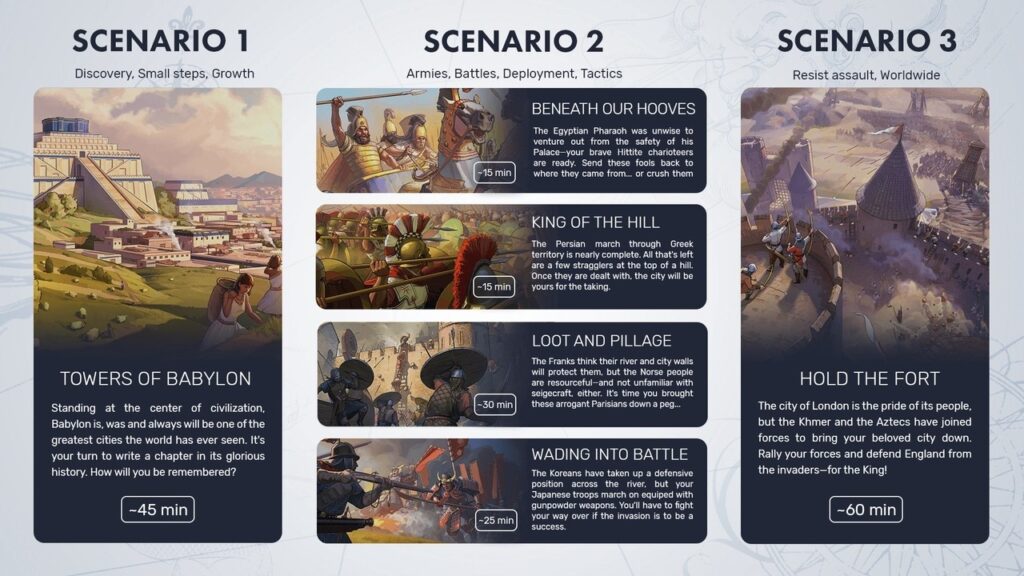 В третьем сценарии игрокам предстоит защитить город Лондон от объединённых сил Кхмеров и Ацтеков. Такая странная битва подчёркивает то, что несмотря на историческую основу игры, Humankind позволит полностью переписать историю и создать самые необычные сочетания взаимоотношений культур.